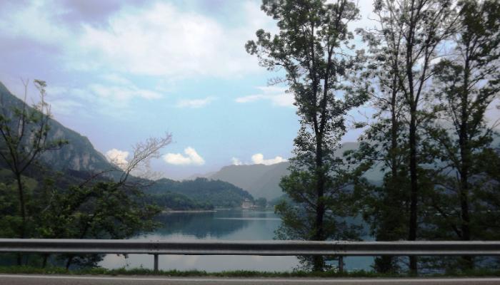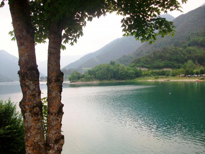 Проезжаем поворот на Рива Дель Гарда, поднимаемся по тоннелю-серпантину и оказываемся в долине Ledro.Озеро Ледро, которое находится в центре долины и является одним из самых чистых озер Трентино, возвышающееся на 655 метров над уровнем моря, с кристальной бирюзовой водой и окруженное зелеными лугами и лесами.