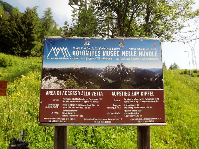 Но главная достопримечательность этих окрестностей-это Горный музей Месснера – MMM Доломиты, расположен на вершине горы Монте Рита. Этот «музей в облаках» был открыт в 2002-м году и посвящен Доломитовым Альпам.Наверх от перевала туда идет дорога, но проехать можно только на специальном микроавтобусе Navetta, который к тому же недешев да и ходит нечасто.