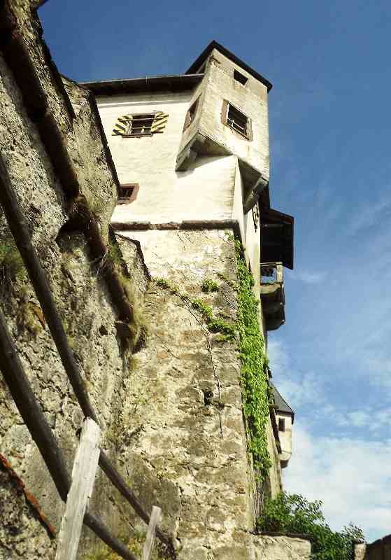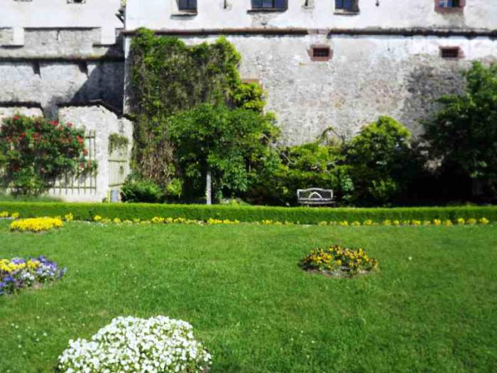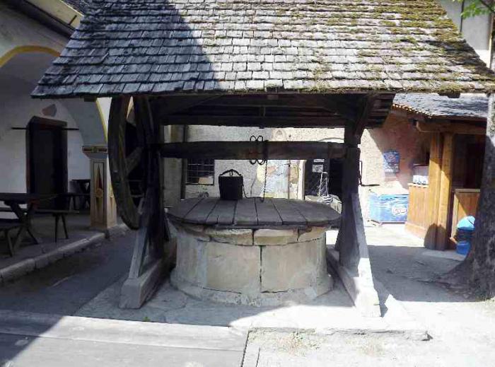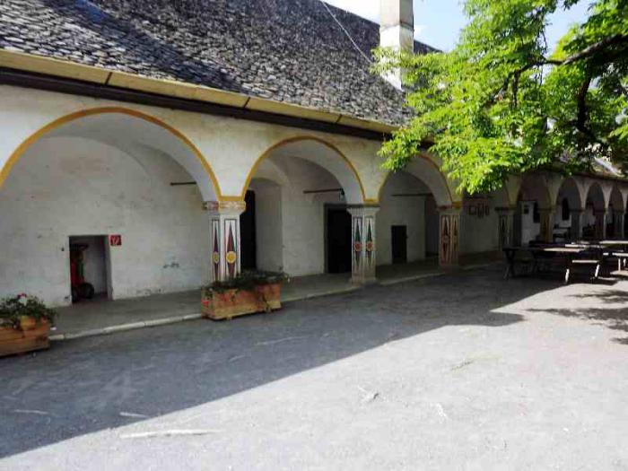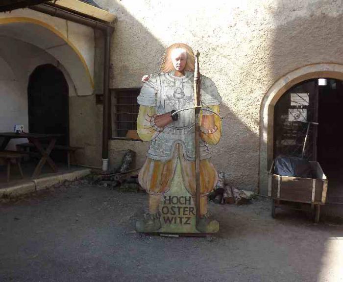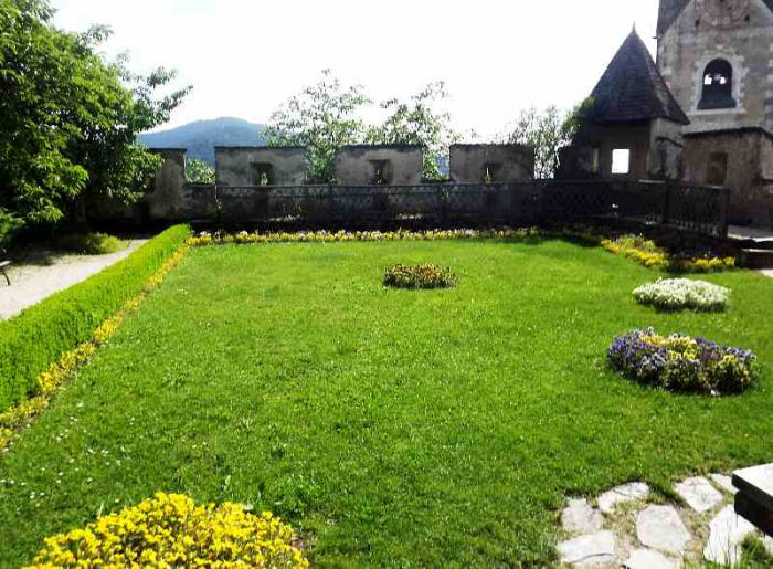 Наверху находятся наружный двор крепости, внутренний двор, сторожевые и наблюдательные башни, оружейная палата. Основу экспозиции оружейной палаты составляет оружие и рыцарские доспехи. Есть зал, где манекен самого Георга барона фон Кевенхюллера, в рыцарских доспехах, на коленях, стоит у алтаря. Жаль, что в помещении фотографировать запрещено, о чём свидетельствует надпись, а нарываться на неприятности не хотелось. Надеяться же на снисхождение суровых австрийцев, не думаю, что стоит. А вот во внутреннем дворе можно было фотографировать сколько угодно.