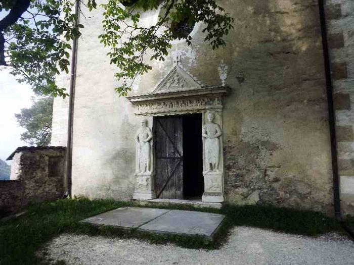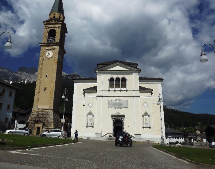 Высота его 1489 м над уровнем моря. Дальше спуск с перевала.Проезжаем Padola.Вот там такая церковь: