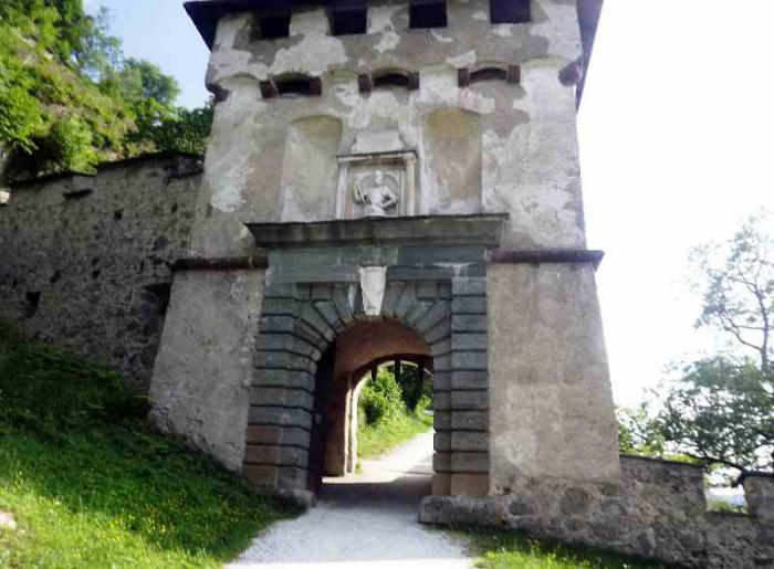 На каждом из ворот имеется камень с надписью, кое-где с портретом: так, например, на воротах Кевенхюллеров имеется портрет Георга Кевенхюллера – строителя крепости, а также – портрет эрцгерцога Карла Каринтии и Штирии (Ворота оружий). Имеется также несколько ворот с подъёмными мостами.