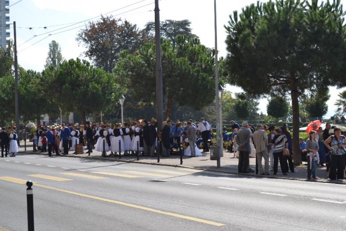трактор, усыпанный венками из цветов. Затем, как на выставке достижений народного хозяйства, по набережной шли разные группы товарищей в одежде спортивных клубов, школ и т.п. Прям первомай какой-то. Все улыбаются, у всех ощущение праздника, играет оркестр на городской ярмарке, взрослые немного под шафе.