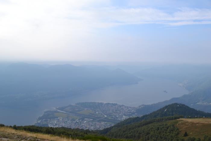 А на вершину горы везет канатка, куда мы и садимся с уже знакомыми детишками, для которых на вершине устроен целый детский городок на природе. Виды наверху просто восхитительны! Всё озеро Маджоре как на ладони, извивается между неприступных гор и плотно усыпано по побережью швейцарскими и итальянскими городками. А впереди внизу лежит Локарно по левую сторону реки и Аскона – по правую. Жаль, что над озером дымка и фотографии получаются блеклыми.