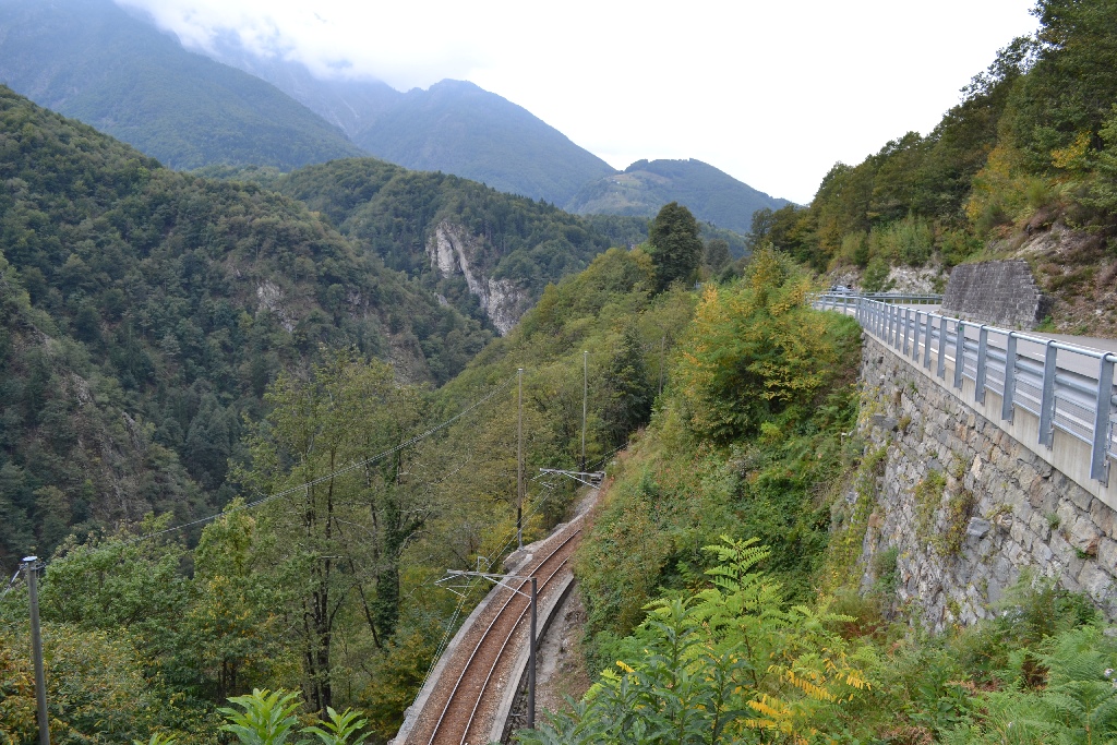 Наш дальнейший путь лежит по горным дорогам через перевал Симплон, частично проходит через Италию, до термальных источников Лейкербада. Очень скоро дорога №560 (и SS337) уходит в горы и начинается серпантин вдоль горного ущелья. Впервые за всю поездку попадаем на очень извилистую дорогу, напоминающую старую дорогу на Красную поляну. Тут то и понимаешь, как на других горных дорогах сглаживали все углы и повороты. Нет, здесь нет резких подъемов и прочих сложностей. Просто дорога повторяет все изгибы склона. Мы летим под 60 и это для этой кривой узкой дороги много, а за нами уверенно едет местный, наступая на пятки, не дает сбросить скорость. В машине – болтанка, вечный газ – тормоз, налево – направо. Через полчаса уже меня начинает подташнивать, молчу о пассажире, постоянно требующего снизить скорость. Останавливаемся подышать свежим воздухом и дать остыть тормозам.