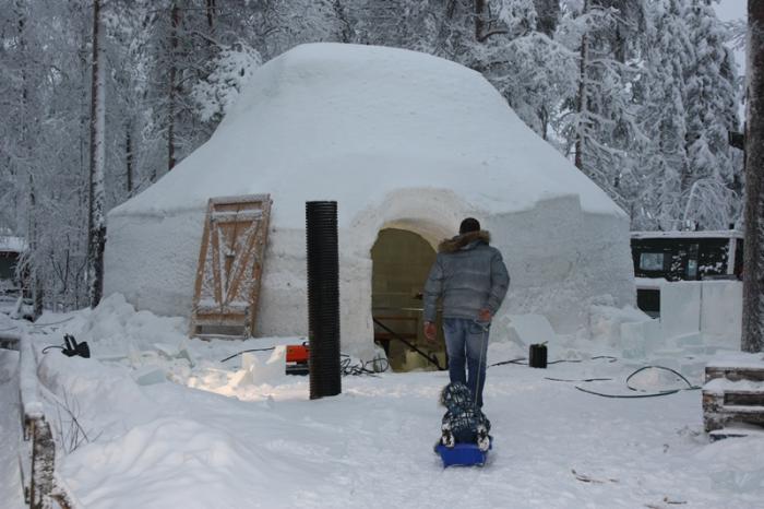 Где-то по пути нам встретился строящийся ледяной дом иглу, так любимый финнами.