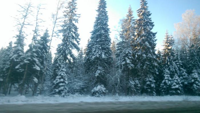 Про дорогу ничего плохого сказать не могу. Сухо, морозно, машин немного. В пробке стояли только перед Питером пол часа.