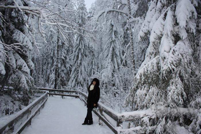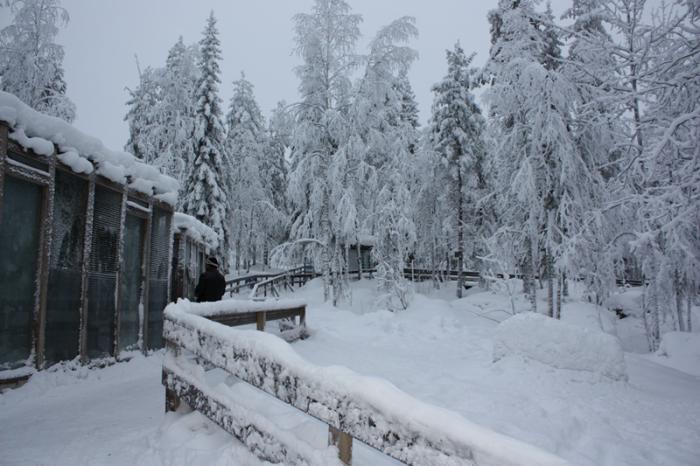 Большую часть пути идешь просто по лесу среди высоченных заснеженных елей. Временами встречаются вольеры с птицами, которыми, нас русских, не удивишь.