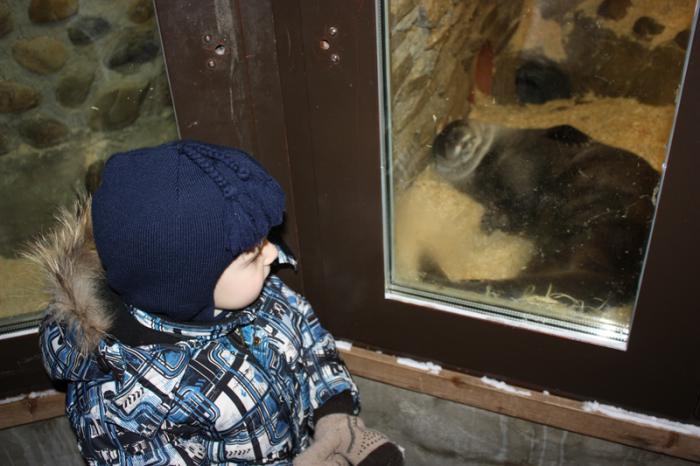 После того, как дошли до белых медведей — стало более интересно идти по зоопарку, потому что дальше были волки, лисы, росомаха, енотовидная собака и пр. Здесь уже мы шли по мосту, а внизу под нами — вольеры с животными. Фото мало, не успевала снимать и фото, и видео.