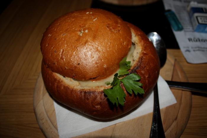 Заказали суп в хлебе. Необычно и вкусно. Стоит попробовать!