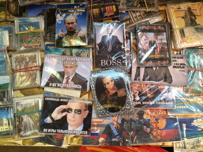 Съездили на рынок за водой и продуктами. Там продавцы магнитов ловят волну популярности Путина для извлечения прибыли. Магнитики забавные конечно.