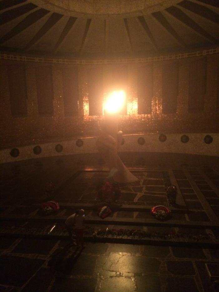 Не могли не зайти на площадь скорби. На стенах этой площади тысячи и тысячи имен героев, которым мы должны быть благодарны. И в центре вечный огонь в знак памяти о них.