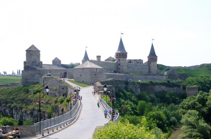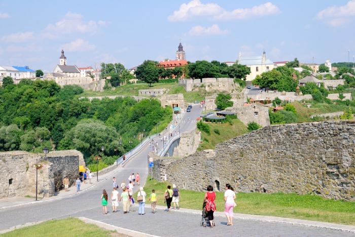 Выход из прохладного салона дался нелегко. Тридцать два градуса и ни пяди тени вокруг. Но вариантов не вагон. Издалека впечатляет. Идем по мосту к укреплениям. Вокруг глубокий каньон, образованный совершенно не соответствующей ему речушкой, но всё это складывается в весьма живописную картину. Нам бы теперь внутрь. А вот как бы не так. Входной билет стоит копейки, только украинские. Но и с этим разобрались. Поимев обещание покупки сувенира, местный продавец снабдил нас местной валютой в обмен на евры. Причем входные билеты не только позволили нам оказаться внутри крепости, но и подарили каждому грамоту о посещении этого места. Обошли, посмотрели, расслабились, притомились от жары, ну и поехали дальше. Всё замечательно, интересно, красиво, но народу, конечно явный излишек, а с другой стороны чего ожидать в субботу после обеда.