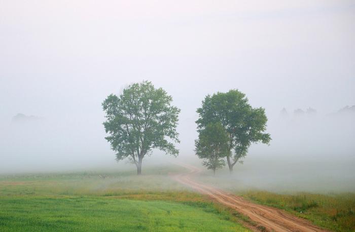 Но сначала был Рассвет. Туманные поля вдоль дороги с едва угадывающимися пролесками вдали и редкими островками крон одиноких деревьев в этом молочном море. Вроде торопимся (хотя зачем?, мы ж отдыхаем, просто едем по трассе и нет повода для остановки), но не спЕшиться и не прислушаться к пробуждению нового дня было бы нелепицей. Ни машин, ни людей, солнце все больше показывается миру, птицы давно уже распелись, прям чудо какое-то. Дальше были аисты. Конечно мы в курсе были, что они в изобилии селятся на столбах вдоль дороги, но лучше один раз увидеть. А увидели мы не один. В первой деревне оценили задумку селян, во второй обсудили качество муляжей, типа ух как здорово сделаны, как живые, интересно из чего, может из перьев, а может вообще чучела, а в третьей поняли, что это настоящие живые птицы, живут они здесь, просто не суетятся и кажутся недвижимыми.