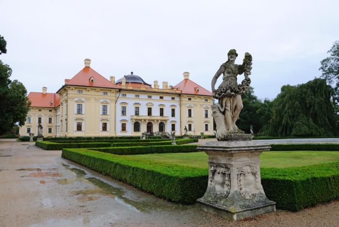 В дневном свете городок особо не увеличился. Зато в нём есть даже дворец с парком, светленький такой, аккуратненький. Город раньше назывался Аустерлиц, а дворец и сейчас носит это имя. Из-за чего мы тут собственно и оказались, вспоминая описания Битвы Трёх Императоров у Толстого и прочие ссылки на это событие. А в городке есть еще спортивный комплекс с названием Бонапарт.