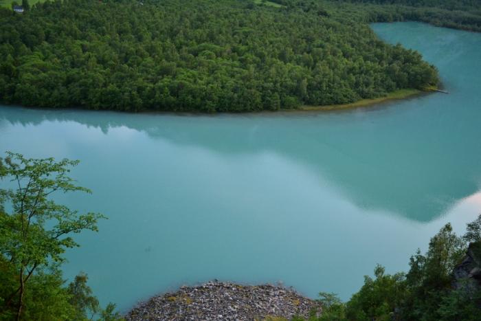 Доехали до фьорда, благодаря ясной погоде безмятежность воды нереального цвета поражала своей красотой.
