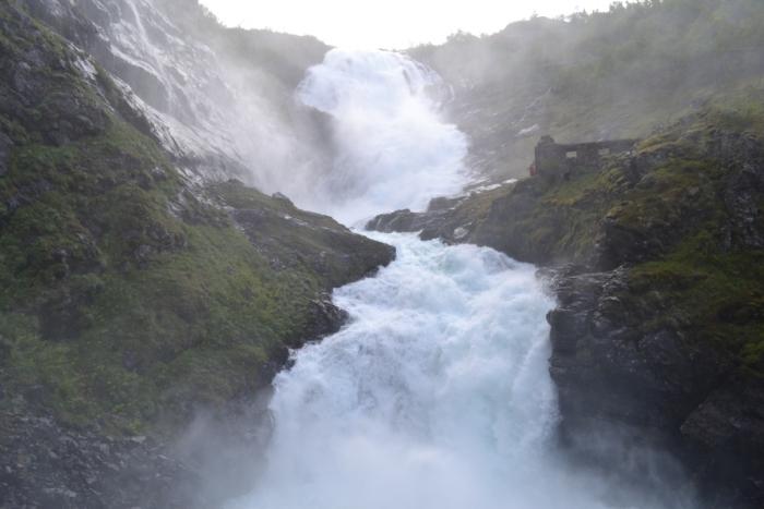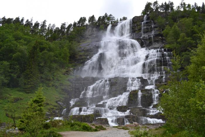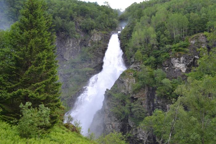 затем вернулись обратно и по трассе 13 вдоль фьорда пропутешествовали до Удды и немного далее до другого раскрученного потрясного двойного водопада Лотефосс.
