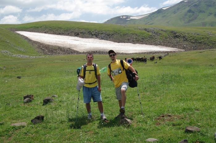Пока я знакомился со своими дальними родственниками, ребята, из Еревана, отправились в трехдневный поход на Аждаак. За трое суток было преодолено 75 км. горного маршрута. А так же: купание в горных озерах, знакомство с Езидами (местные племена, населяющие высокогорные районы), проба сыра и молока и сооружение снежной бабы, из лежащего в горах снега…