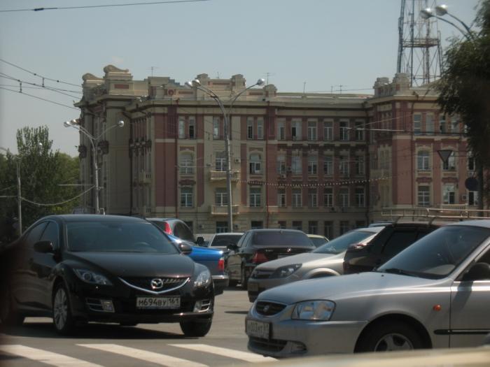 Въезжаем в Ростов на Дону, долго блуждаем по городу (без навигатора). Машин очень много, движение затруднено, всюду пробки.
