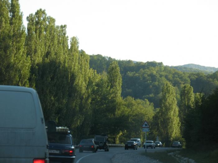 За Краснодаром характер трассы начинает заметно меняться. Вдалеке, сквозь вечерний мираж, дымящегося над асфальтом воздуха, начинают появляться очертания гор. По разным сторонам дороги то и дело появляются остановки-базарчики, с разноцветными овощами и фруктами. Несмотря на огромный выбор, не скажу, чтобы это вызывало огромный ажиотаж у водителей, тем более на закате дня. Их постоянное мелькание то справа, то слева сделало свое дело. И вот уже недавно дремлющая команда, сидящая в машине, приободрилась, стали слышны разговоры: кто-то мечтает о винограде, кто-то о грушах, кто-то о прохладной минеральной водичке, кто-то о том, чтобы, наконец, окунуться в море, и лишь водитель, следящий за дорогой, мечтает обо всем и сразу, особенно об отдыхе.