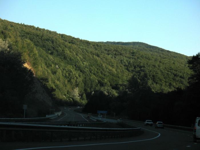 Разметка стала, словно, заигрывать с водителем: сплошная по центру и одна полоса для опережения то в попутном, то во встречном направлении, меняясь. И нужно успеть опередить впереди едущие грузовики, и перестроиться до того, как мелькающую на полотне дороги белую стрелку не вытеснит сплошная линия разметки.