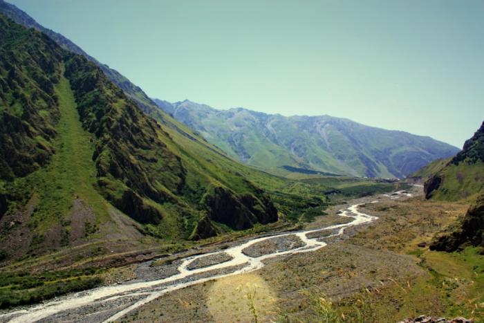 Дарьяльское ущелье. Слышим шум Терека. Видим коров и другой скот, медленно бредущий вдоль дороги. Время здесь словно замедляет свой ход, или даже полностью останавливается. Справа мелькают люди в военном, с автоматами на плечах, а чуть дальше стоят БТРы. И все сильнее становится ощутимым контраст: удивительная красота природы и полное безумие человека. Эти два чувства возникают внутри одновременно.