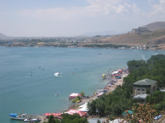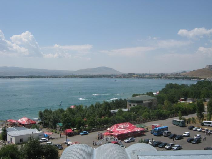 Обратный путь из Еревана в Харьков не был столь богат событиями и впечатлениями, за исключением, разве что одного-двух, о которых расскажу чуть ниже. А вот по пути из Степанакерта в Ереван, мы заехали в Джермук- известный на весь Мир городок, с чистейшей минеральной водой. Видели завод, на котором эту воду разливают и отправляют в различные уголки Армении и всего мира. Видели множество санаториев, водопадов, парков и скверов, утопающих в зелени, рек и заводей. Пили воду, текущую прямо из гор в специально оборудованное место, не знаю его название. Там несколько источников и везде разная температура, от 25 до 53 градусов. В последнем- невозможно долго держать руку в воде, настолько она горячая. Само место напоминает какой-то небольшой Европейский курортный городок. Очень чисто, очень аккуратно. Вокруг слышна иностранная речь. Мы были здесь всего полдня, после чего нужно было ехать дальше, в Ереван. На следующий день побывали в Эчмиадзине и Севане, а также в церкви Ахтамар. Все очень понравилось, кроме перегруженных трасс и забитых людьми пляжей. Такое впечатление, что весь Ереван на выходные съезжается на отдых. Ощущение курорта.