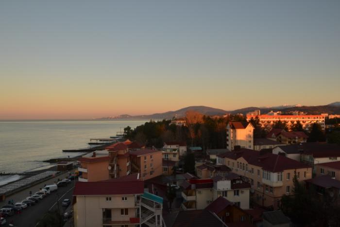 Изучив рынок аренды жилья в Адлере, мы сняли квартиру в старом центре города, на ул. Просвящения, на первой линии. Новый дом, свежая квартира 1+1. Завтракали дома, обедали\ужинали в столовой напротив (200 руб. за каждого).