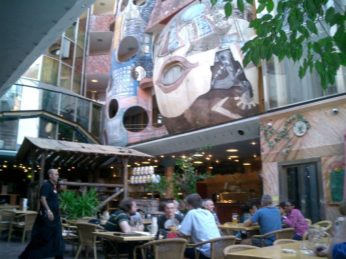Размеры и декор этого заведения впечатляют! Залы на нескольких уровнях, в том числе и в подвалах, а их как минимум 2 этажа в низ. Есть пивной сад, а главный зал под открытым небом, это как внутренний двор и в случае непогоды, закрывается сдвижной крышей.