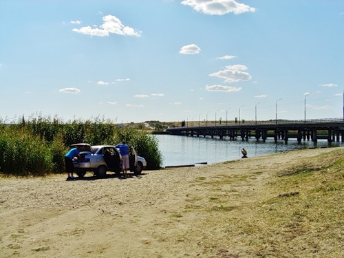 Несмотря на то, что уже чувствовалась усталость, я все же решил добраться до Волгограда. Достаточно быстро долетел до Камышина. Ближе к Волгограду небо прояснилось, но было уже понятно что доехать до предполагаемого ранее места ночлега я не смогу, очень сильно за день утомила плохая погода. Через 1,5км после пос.Горный Балыклей, перед мостом, с левой стороны есть отличный спуск к заливу, красивый вид, хорошее место для отдыха.