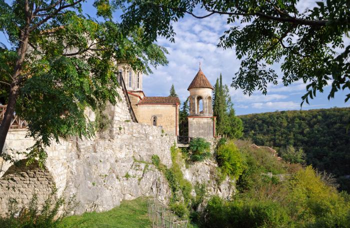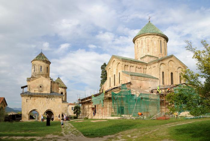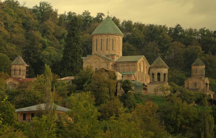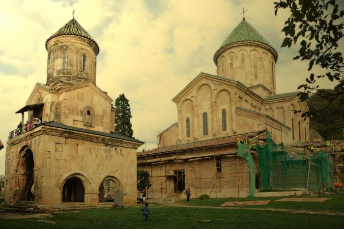 В Гелати находится монастырь. Да не простой, а весьма значимый. Он основан и построен царём Давидом Агмашенебели (Строителем) в 1106 году. Стоит на холме над рекой Цхал-цитела (что по-грузински означает «красная река» — такое название она получила оттого, что после одного из многочисленных набегов турок вода в реке стала красной от крови убитых).
