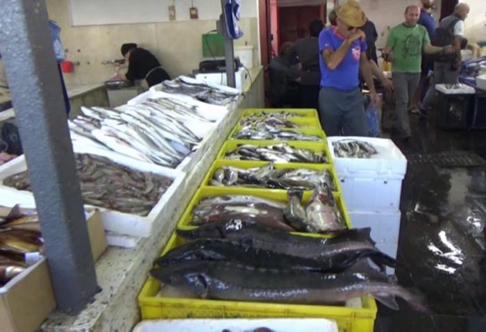 На рынок мы успели. Это небольшой ангар, всего-то два коротких прохода между лотков с рыбой. Зато ассортимент широк. Такого чтобы одно и то же встречалось в разных местах нет. Везде что-то свое конкретное, отсюда и компактность.