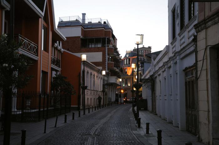 К столице подъехали уже в глубокой темноте. Навигатор настойчиво рекомендовал ехать в Кахетию сквозь город. А там пробка. Вернее на въезде. Стоит полиция и направляет поток куда-то направо. Я в темноте вообще не понял где мы проехали, в какой-то момент уже в городе при пересечении Куры справа показалась подсвеченная Нарикала. А остальное всё по приборам.