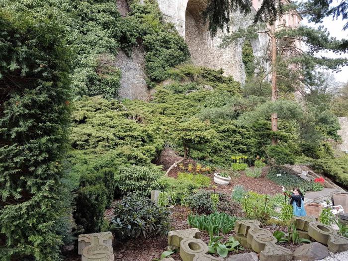 Замок окружают 12 садовых террас с фонтанами и скульптурами, здесь высажено более чем 100 видов растений, привезенных из 4 континентов.