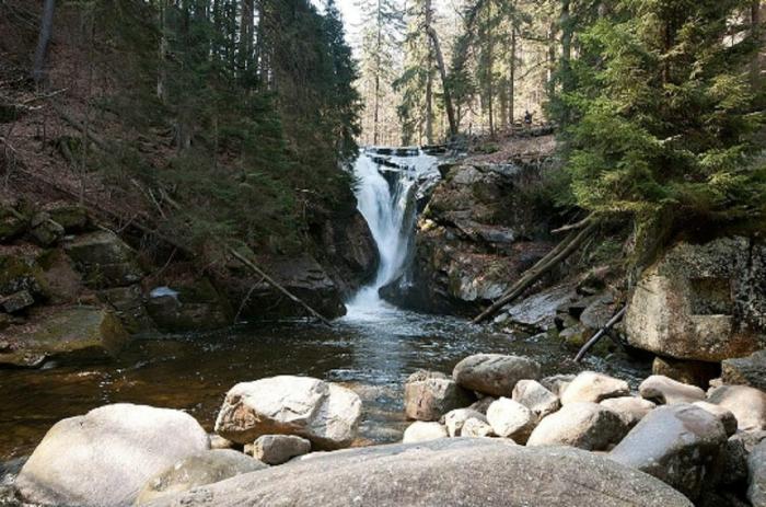 Шклярский водопад – второй по величине водопад, расположенный в польском горном массиве Крконоше на территории национального парка. Находится на высоте 520 метров над уровнем моря, высота 13,3 метров. Широкий каскад падающей воды закручивается в причудливые конические спирали, что делает водопад очень живописным. Ежегодно национальный парк площадью 36 тысяч гектар посещают тысячи туристов. Помимо водопада, к которому ведет широкая дорога, заканчивающаяся смотровой площадкой, в горной местности есть интересные памятники архитектуры (замок Хойник и др.). В Крконошах расположен исток реки Эльбы...