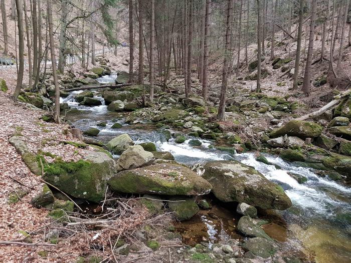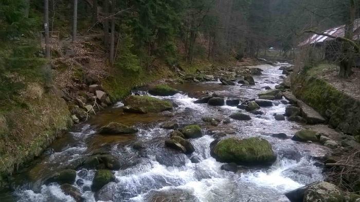 До сих пор жалеем, что сделали только небольшую санитарную остановку и не прошли дальше по указателям — ведь метров 500 — и побывали бы на знаменитом в Польше Шклярском водопаде. Но почему-то в этот день место было совершенно безлюдным, и нам в голову не пришло повнимательнее почитать «стрелки»…