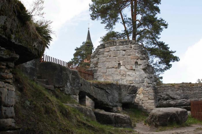 Вход на территорию был платный, но внутри замка среди множества руин-строений, лестниц и скальных комнат-углублений открытыми были лишь часовня