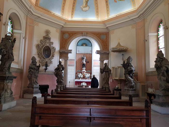 Замок Груба Скала – место куда более туристическое, чем Вальштейн, ведь парковка — у ворот замка. Но куда менее интересное. Внутри Груба Скала отель. Так что входной билет – это только возможность поглазеть сверху на долины края и на замок со внутреннего двора.