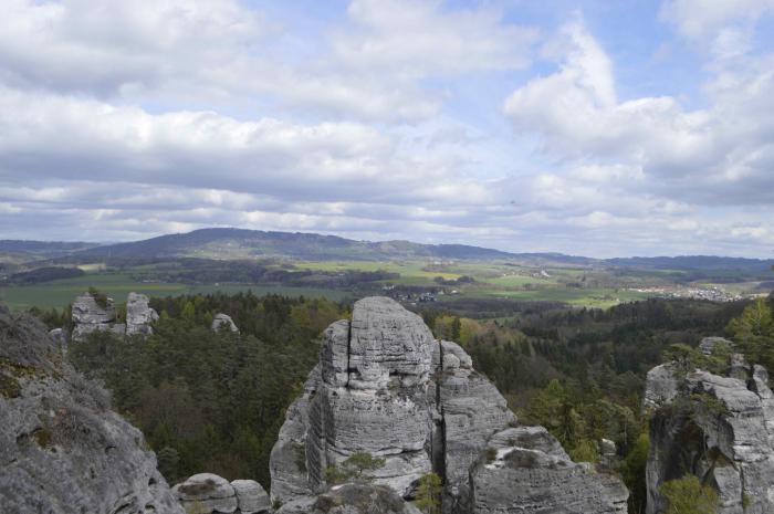 Среди природных богатств Чешского рая следует особо выделить скалистые города, которым присущи и благородство готики, и легкомыслие барокко, и вычурность рококо… Главная достопримечательность края Праховские скалы, популярные Грубые скалы, сформировавшиеся из остатков ледяной глыбы Малые скалы, Сухие скалы, Врановский гребень. Привлекательные Беседицкие скалы с лабиринтами и Божковские пещеры с самым большим в стране подземным озером…