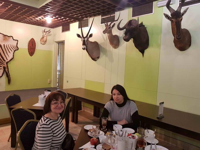 Кафе отеля, к слову, было оформлено в стиле сафари. Нам-то есть рядом с козлами не привыкать, а вот вегетарианцам или гринписовцам здесь, наверное, и кусок в горло не полезет…