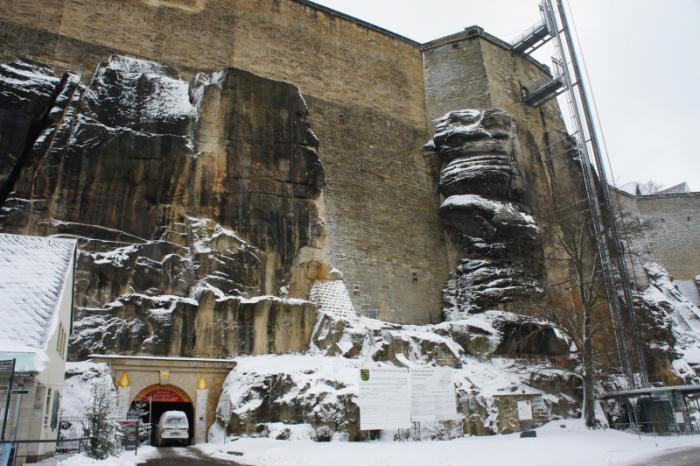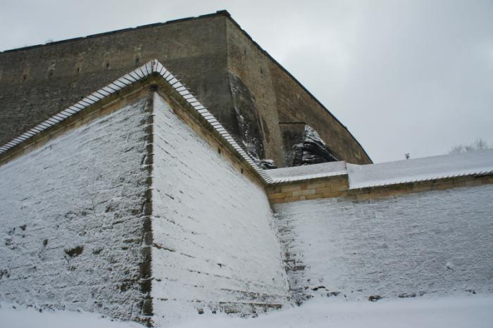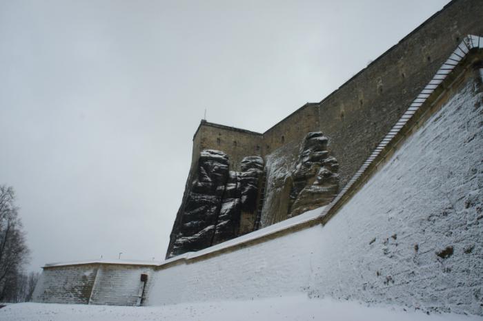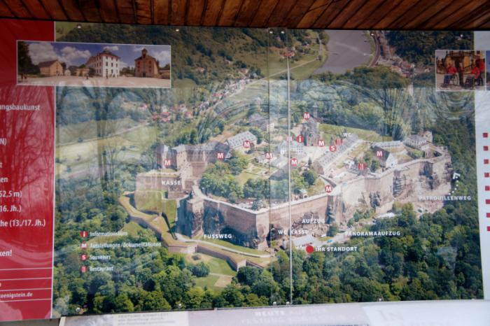 Прежде, чем покинуть Германию, мы решили сделать небольшой «крюк» и посмотреть одну из жемчужин Саксонской Швейцарии – крепость Кёнигштайн (Festung Konigstein). В Германской Саксонии недалеко от Дрездена, рядом с Эльбой много веков существует небольшой, практически ничем не примечательный курортный город Кёнигштайн. Однако, туристы со всего света спешат именно в это место. Своей популярностью Кёнигштайн обязан, расположенной в окрестностях города, знаменитой одноимённой крепости, которая за всю историю своего существования, по праву, считалась и до сих пор считается самой (или одной из самых) мощной в Европе. Этот грандиозный замок расположился на вершине огромной скалы, чем то напоминающей большой стол, общей площадью 9,5 гектар. Лучшее стратегическое положение трудно себе представить, во все времена грозная крепость имела, прежде всего, оборонительное значение.