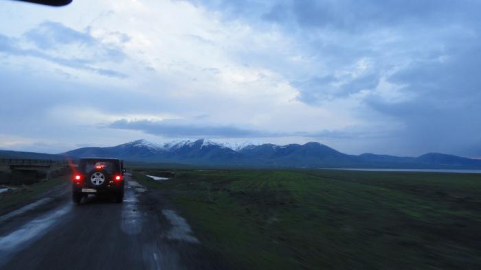 Во второй половине дня, после спуска с перевала Агверен (2100 м) погода совершенно испортилась, промозглый ветер погнал низкие облака, издевательски бросаясь в ветровое стекло мелкими каплями дождя. Горы раздвинулись, в долине реки дорога большим полукругом огибает широко разлившееся водохранилище.