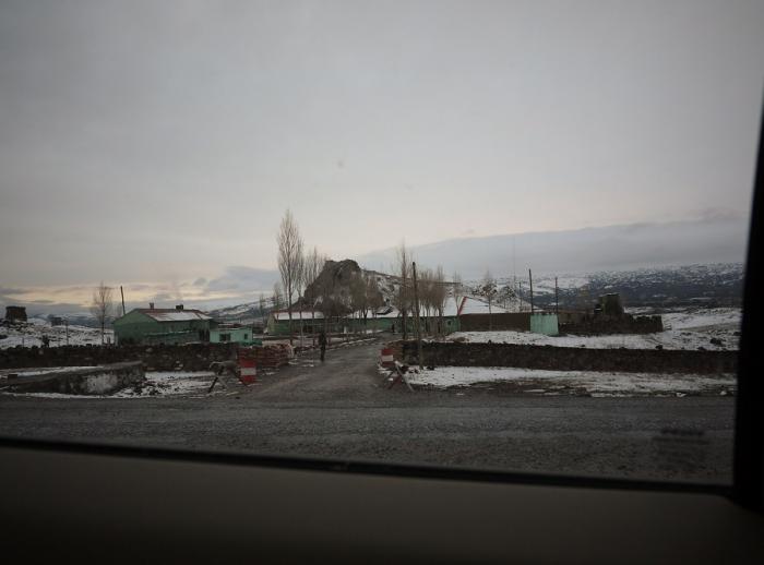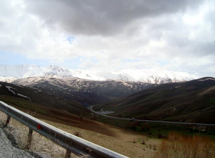 Зеленоватая чаша озера Ван осталась позади, а мы начинаем подъём к массиву вулкана Тендюрек (3548 м). Но прежде вскарабкиваемся на почти плоский перевал Гондереми (1900 м), где вновь попадаем в раннюю весну. Вокруг раскисшая грязь, чуть повыше – пятна снега. Дорога проложена вдоль самой границы с Ираном, проведенной по Курдистанскому хребту. На высоте 2360 метров расположен КПП турецких пограничников, которые, проверив наши паспорта, милостиво пропускают нас дальше. Температура опустилась до нуля.