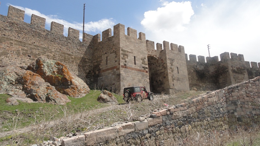Спустившись с горных отрогов, выехали из Эрзурума на восток в сторону городка Пасинлер, расположенному в верховьях реки Аракс и откуда, согласно карте, отходит ещё одна колея через горы в направлении озера Ван, куда мы намереваемся добраться сегодня. В центре города на скале высится старинная крепость Хасан-Кала, снизу немного похожая на взлетающую птицу.
