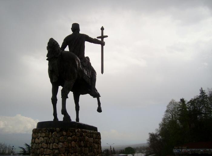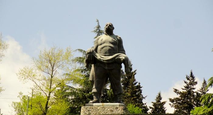От Сигнари едем в сторону известного опять же по фильму «Мимино» городу Телави. В районном центре Гурджаани, на высоком холме возвышается пятнадцатиметровая статуя Георгия Махарашвили – простого кахетинского виноградаря ставшего главным героем в фильме «Отец солдата».