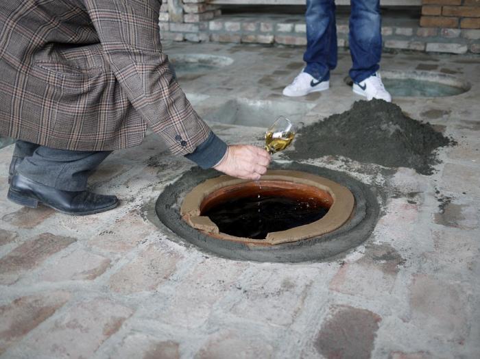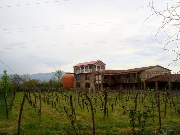Не откладывая на потом, сразу же приобретаем по паре бутылок вина местного производства. Многолитровые кувшины, в которых бродит и хранится вино, расположены в подвале, где круглогодично поддерживается одинаковая температура. Только горловины гигантских сосудов, обмазанные плотным слоем красной глины и закрытые круглым толстым стеклом, находятся на уровне пола первого этажа, напоминая иллюминаторы морских лайнеров.