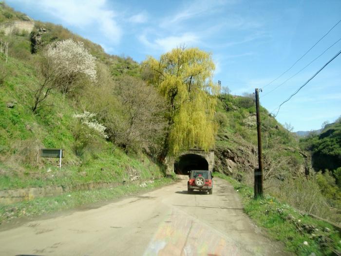Сразу за Ванадзором начинается узкое, очень живописное ущелье реки Дебед. Шоссе петляет по крутым, зачастую отвесным склонам, поросшим густым кустарником, внизу шумит река, пока ещё полноводная, сверху светит яркое теплое солнце, позволяя скинуть с себя теплые одежки.