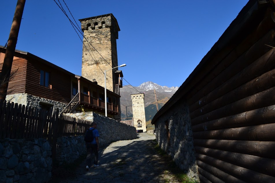 Лучше чуть-чуть отойдем от центра Местиа с ее кафе, магазинчиками и праздношатающимися стайками людей в удобной походной одежде. Грузинская архитектура существует столетия, в той же мере в Грузии отсутствует понятие регулярной застройки населенных пунктов. Свернув в любой проулок с основной улицы, сразу попадаешь в сеть каменных заборов и мощенных, с сильным уклоном запутанных улочек.