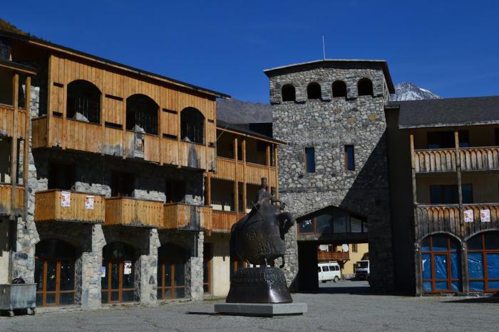 Положа руку на сердце сам городок можно отсмотреть за час полтора. Ничего примечательного в нем, кроме бронзовой царицы Тамары на бочкообразном коне и пары музеев нет. Местиа нужен как база для ночлега и прокорма. Да, еще для общения с соратниками из других стран. В общем — это место тусовки. Те, кто добрался до Местиа дальше идут гулять пешком по горам, или едут в Ушгули.