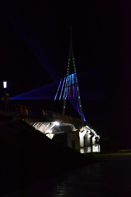 Поразительно, что в середине октября, когда всех отдыхающих кроме нас было полтора десятка человек, иллюминация на курорте работала вовсю. Пальмы и скульптуры подсвечивались, мост устраивал лазерное шоу. Даже душевые столбики на пляже исправно выдавали порцию воды по нажатию кнопки (минуты 2 идёт вода). В общем – место-загадка, простор для фантазии в октябре.