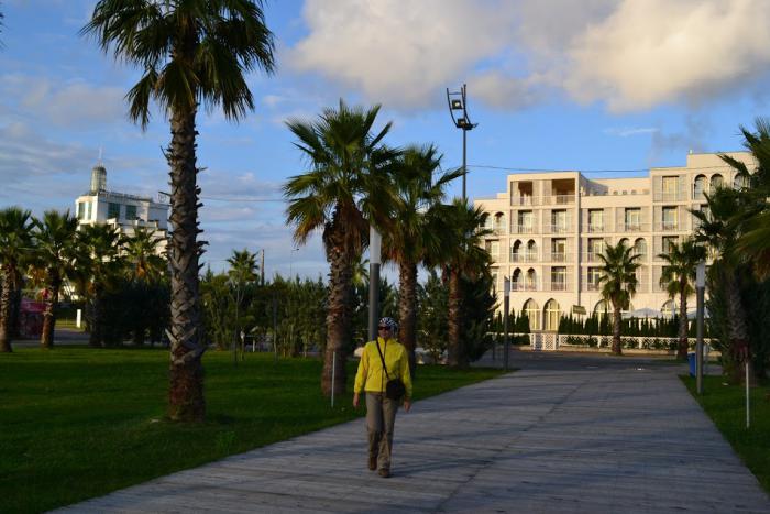 Мы порылись в интернете и вычитали, что курорт Анаклиа проектировали испанские архитекторы. Да… как у них с психикой я не знаю, но Хыки (обе по краям набережной) вышли отменные. Даже нас подняли с кресел и заставили прогуляться с пяток километров.